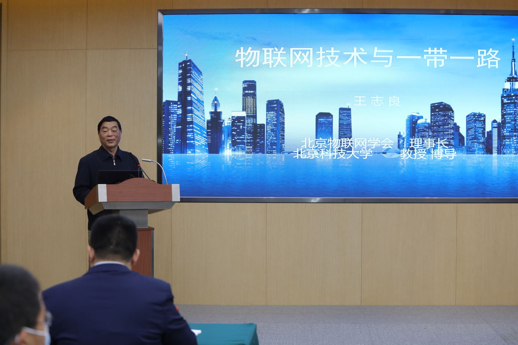研讨会特邀国家发改委区域开放司王超以及北京科技大学王志良教授分别作了关于《扎实推进“一带一路”建设高质量发展》和 《物联技术与“一带一路”》的专题报告。